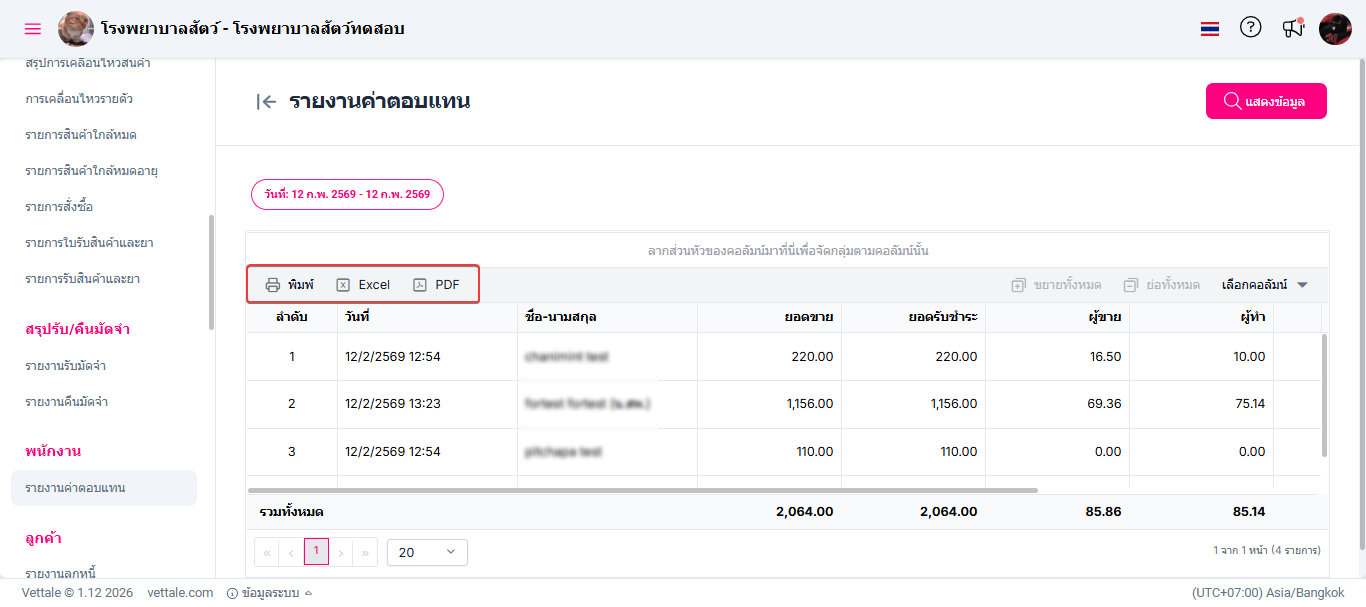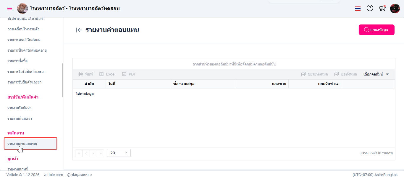 ผู้ใช้งานไปที่เมนูรายงาน
