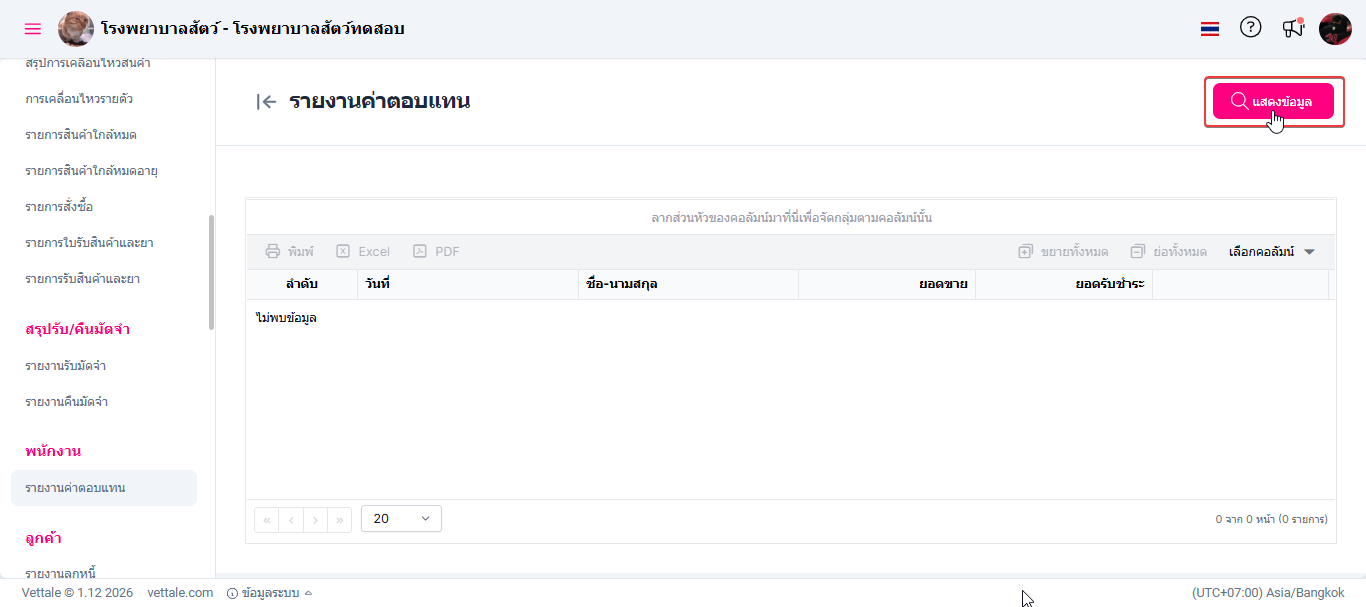 เมื่อผู้ใช้งานเข้าสู่หน้ารายงานคลิกปุ่ม "แสดงข้อมูล"
