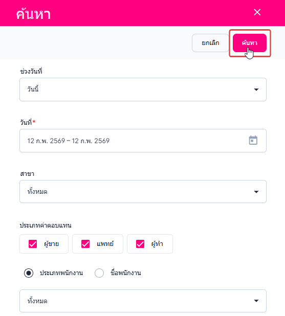 ประเภทค่าตอบแทน ผู้ใช้งานสามารถเลือกดูข้อมูลตามประเภทได้ ดังนี้ ผู้ขาย แพทย์ ผู้ทำ