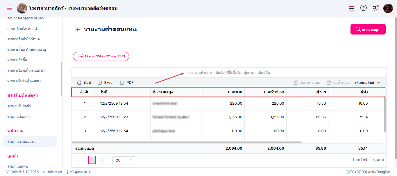 ผู้ใช้งานสามารถลากส่วนหัวของคอลัมน์เพื่อจัดตามกลุ่มของคอลัมน์ได้