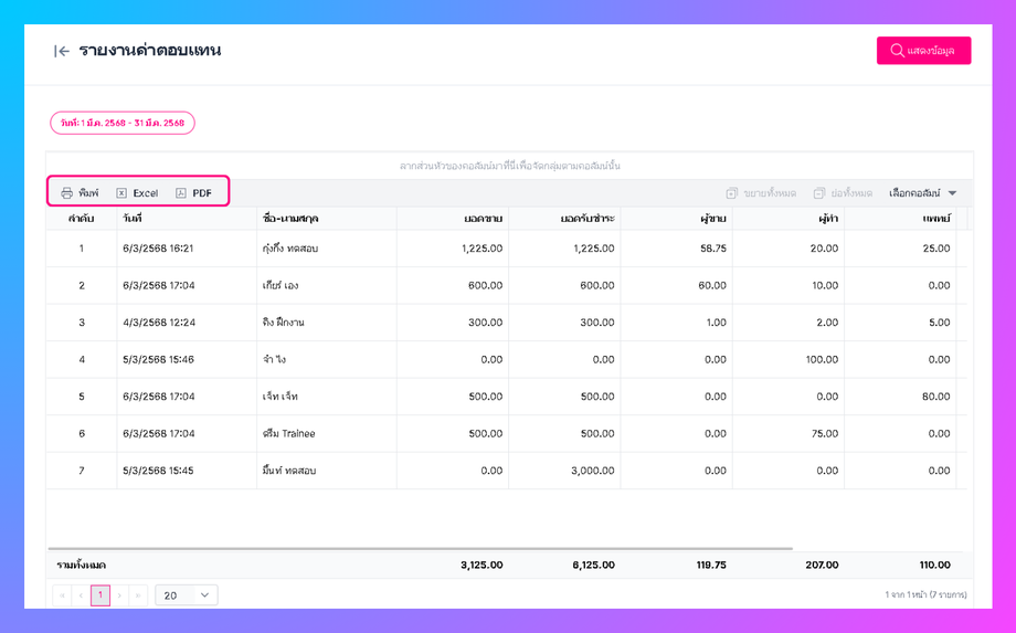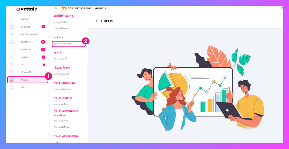 ไปที่เมนูรายงาน > คลิก รายงานค่าตอบแทน