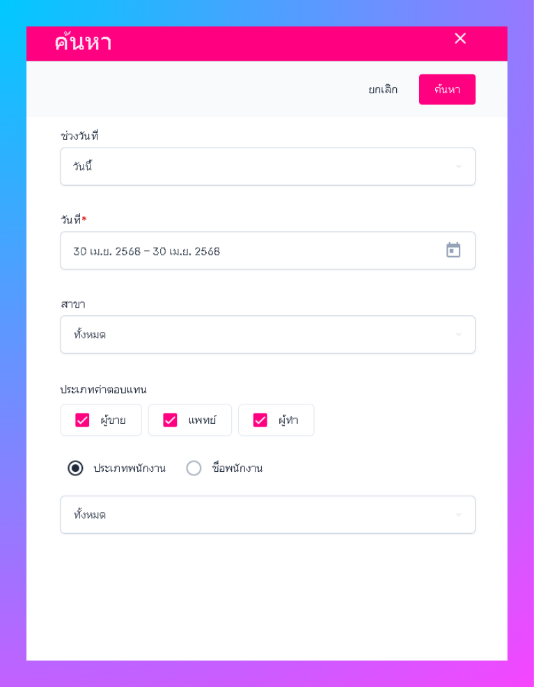 - ผู้ใช้งานทำการเลือก ประเภทพนักงาน หรือ ระบุชื่อพนักงาน