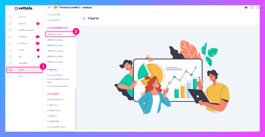 - คลิกเลือก สถิติสัตว์ป่วย สสป.1