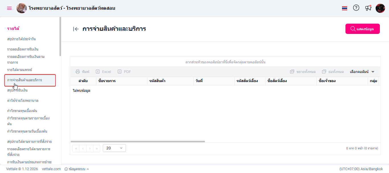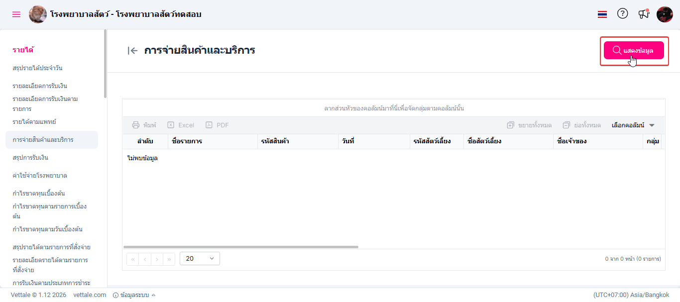 • เมื่อผู้ใช้งานเข้าสู่หน้ารายงานคลิกปุ่ม "แสดงข้อมูล"