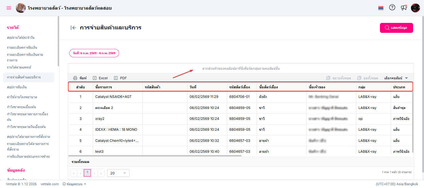 • ผู้ใช้งานสามารถลากส่วนหัวของคอลัมน์เพื่อจัดตามกลุ่มของคอลัมน์ได้