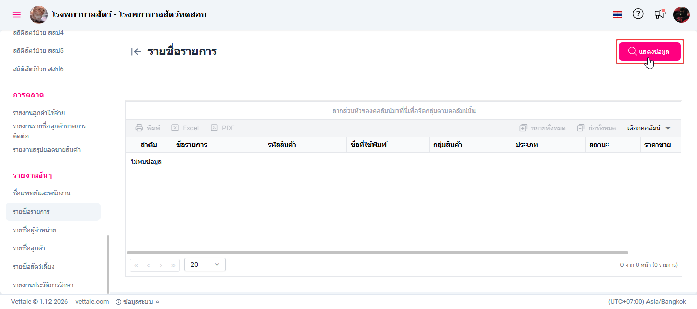 เมื่อผู้ใช้งานเข้าสู่หน้ารายงานคลิกปุ่ม "แสดงข้อมูล"