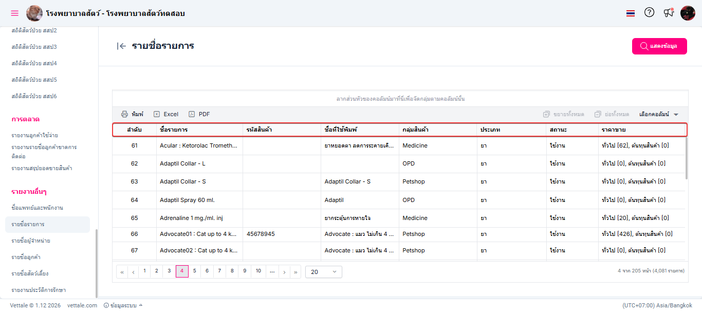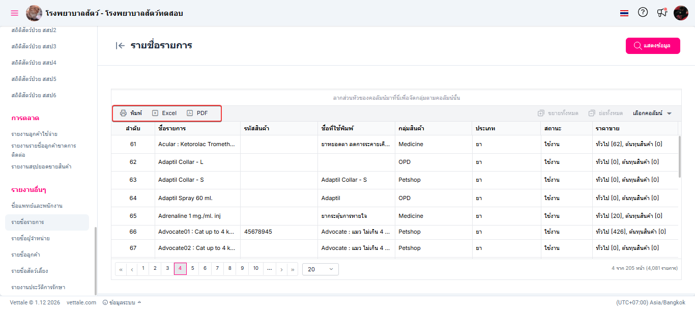 รายงานนี้ช่วยให้ผู้ดูแลระบบหรือเจ้าหน้าที่สามารถตรวจสอบ ค้นหา และบริหารจัดการข้อมูลรายการยา สินค้า และบริการของคลินิกได้อย่างเป็นระบบ ถูกต้อง และมีประสิทธิภาพ เพื่อสนับสนุนการควบคุมสต็อกและการให้บริการอย่างเหมาะสม