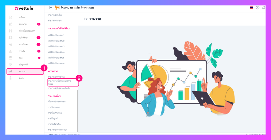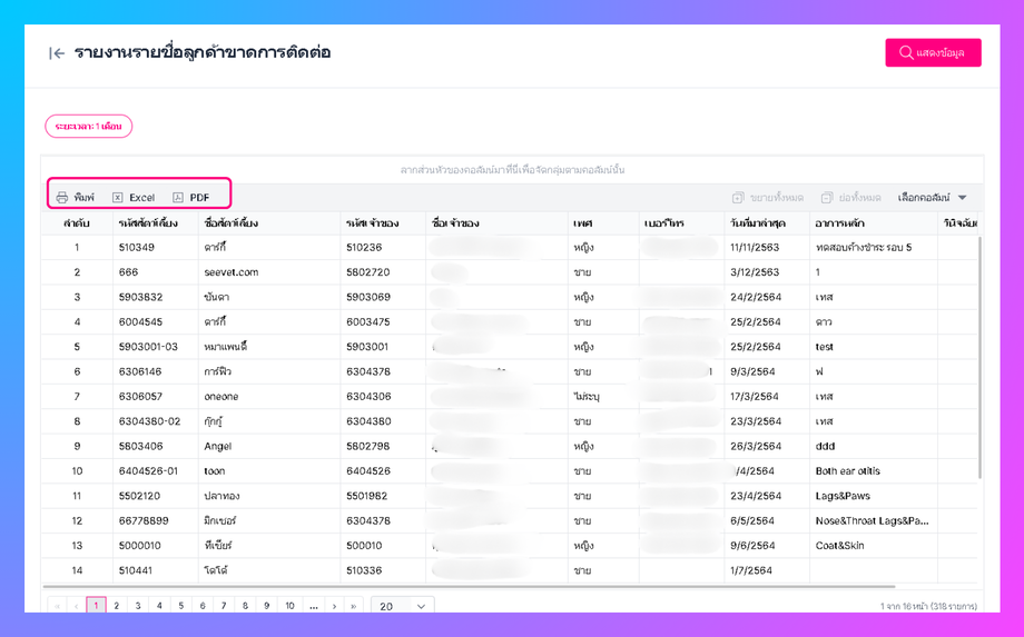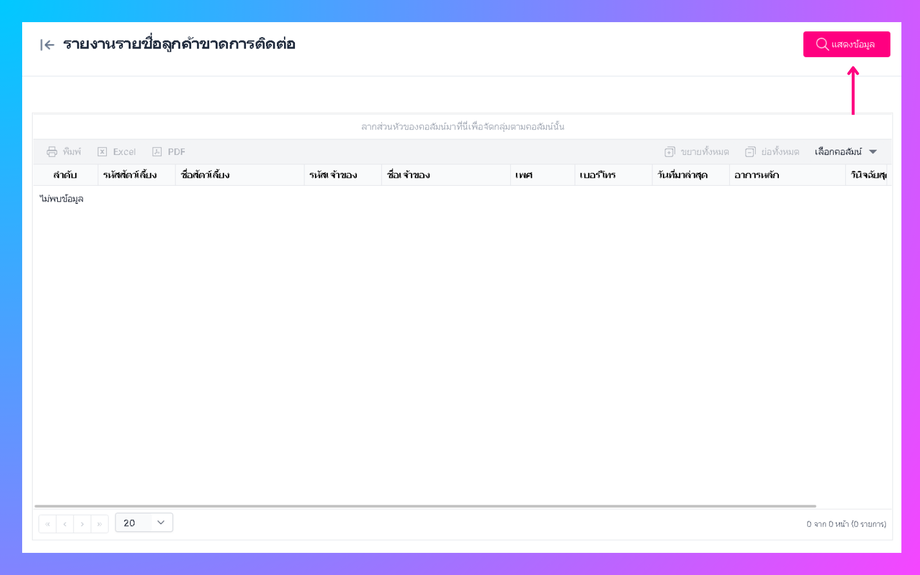 - คลิกเลือก รายงานรายชื่อลูกค้าขาดการติดต่อ