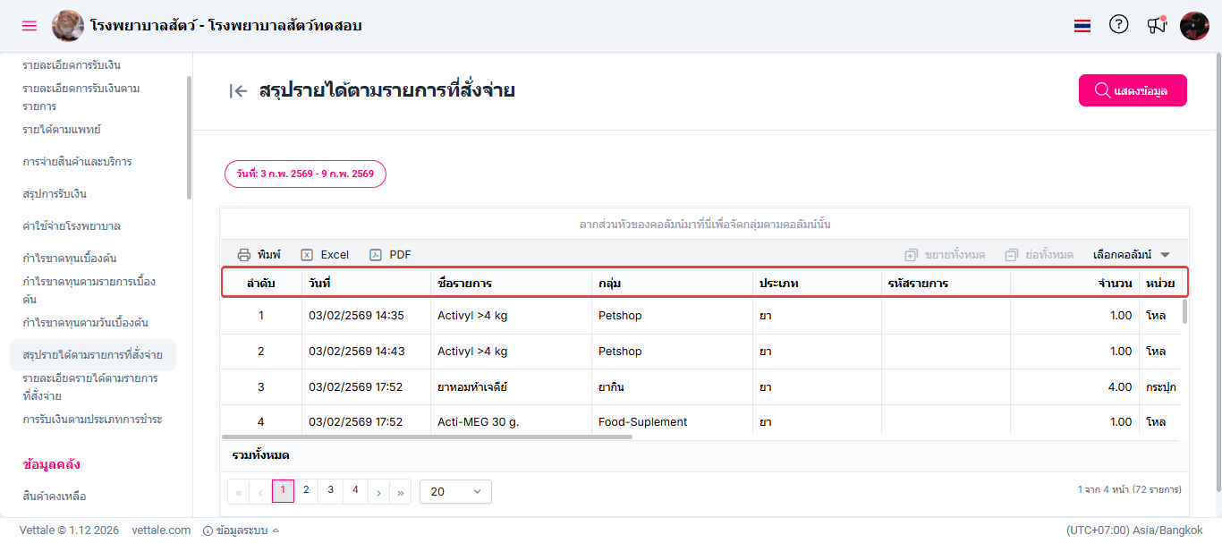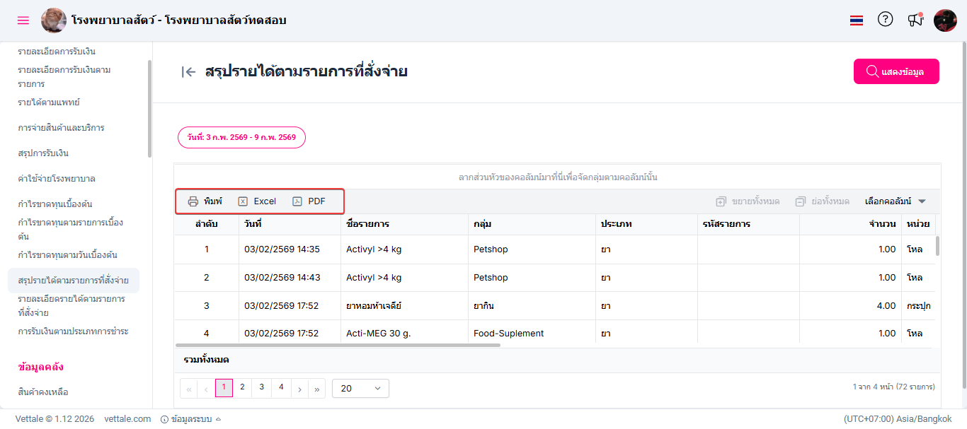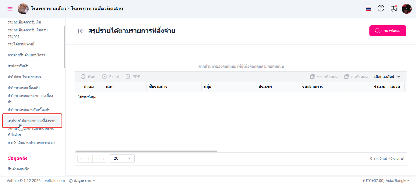 ระบบสรุปรายได้ตามรายการที่สั่งจ่ายนำเสนอข้อมูลเกี่ยวกับรายได้ที่ได้จากรายการบริการหรือสินค้าที่ลูกค้าจ่ายเงิน ให้ภาพรวมและการวิเคราะห์รายได้ในแต่ละประเภท พร้อมทั้งสรุปรายการรับเงินที่สั่งตามรายการ ช่วยให้ผู้บริหารตรวจสอบประสิทธิภาพและแนวโน้มการเงินของธุรกิจได้อย่างมีประสิทธิภาพ