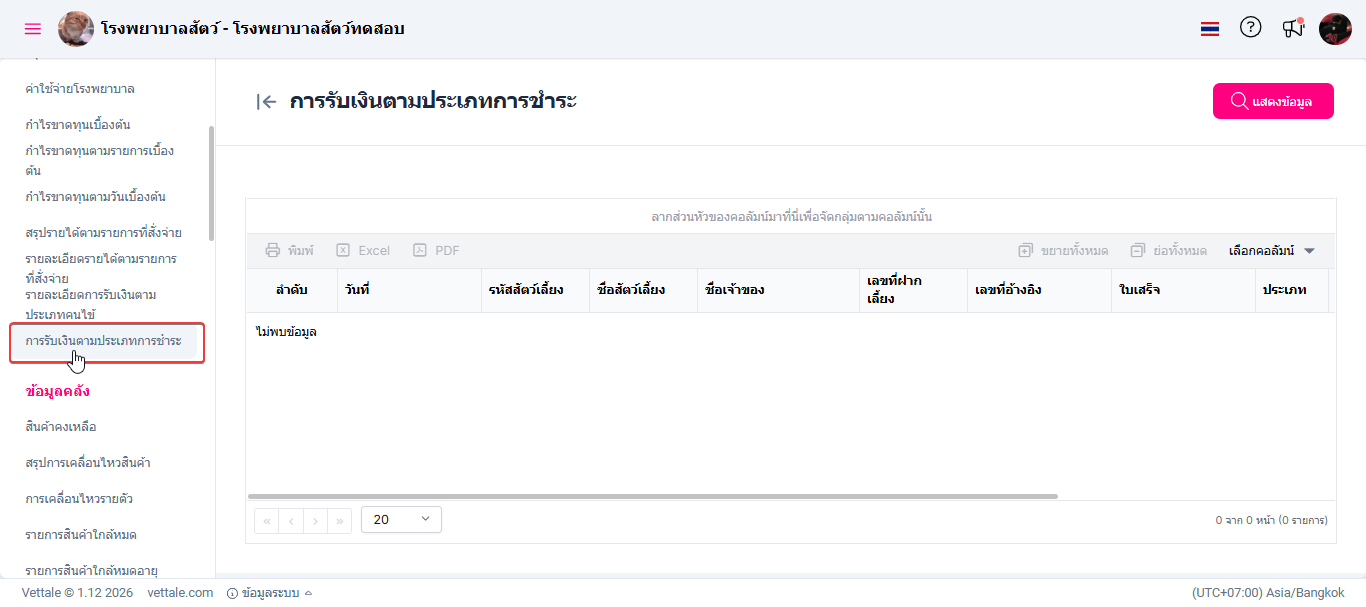 การทำงานของระบบนี้จะช่วยให้ผู้ใช้สามารถดูแลและติดตามการชำระเงินของลูกค้าตามประเภทการชำระต่าง ๆ ได้โดยรวดเร็ว ซึ่งทำให้ง่ายต่อการวิเคราะห์ข้อมูลการเงินและบริหารจัดการการเงินของคลินิก