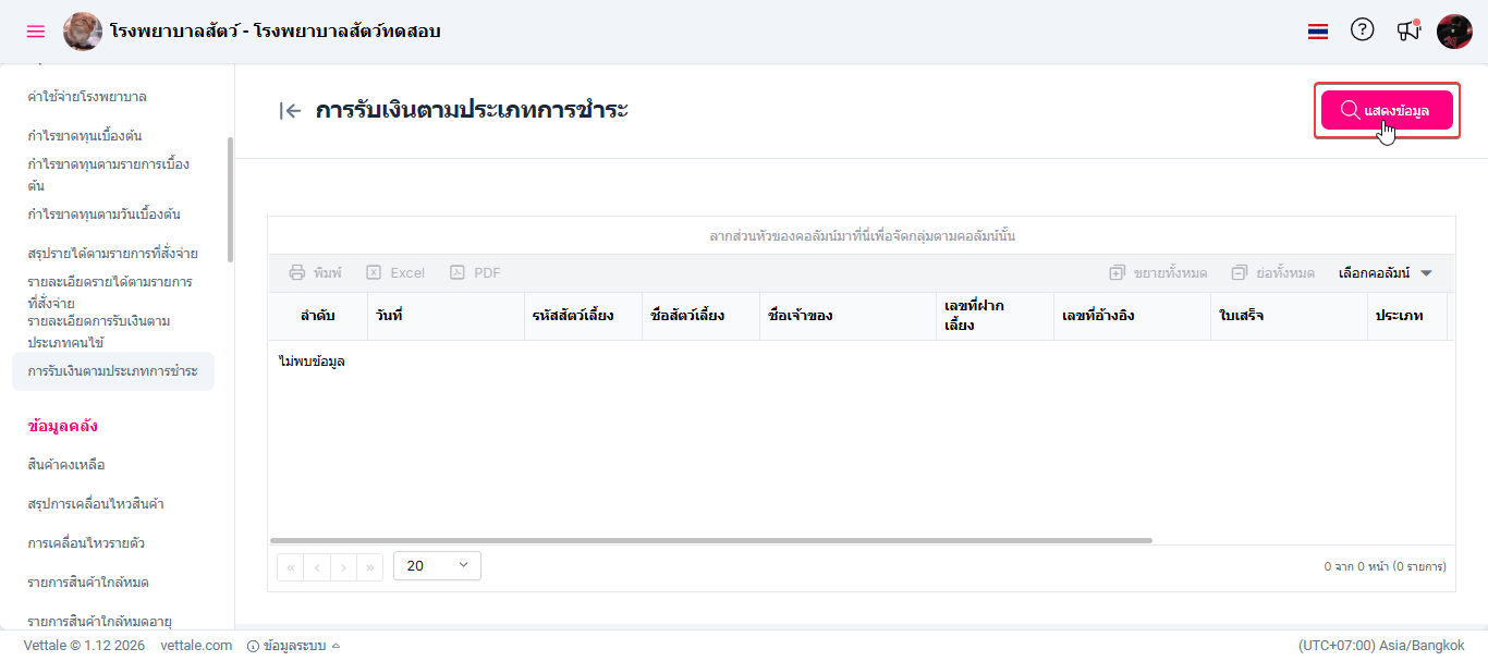 • เมื่อผู้ใช้งานเข้าสู่หน้ารายงานคลิกปุ่ม "แสดงข้อมูล"