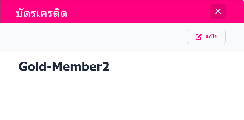 ระบบจะเข้าสู่หน้ารายละเอียดบัตรเครดิตที่ผู้ใช้งานเลือก ให้กดปุ่ม "แก้ไข" เพื่อแก้ไขข้อมูลบัตรเครดิต