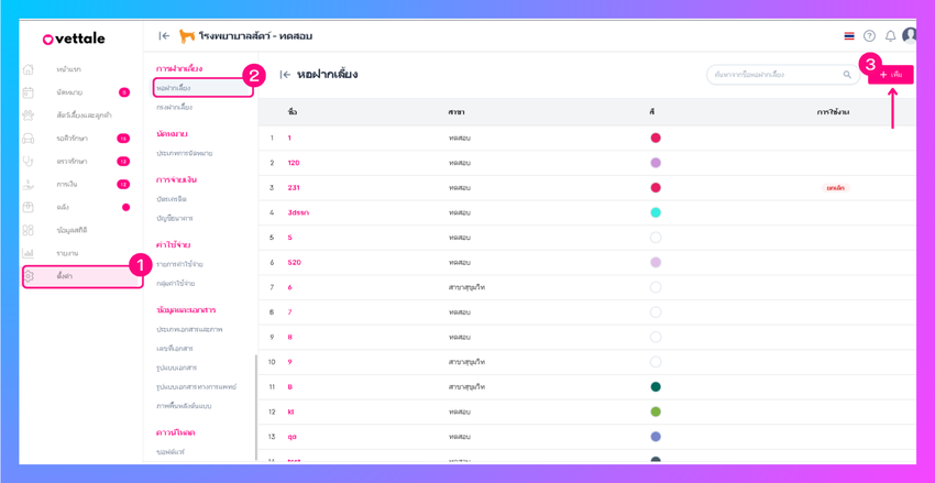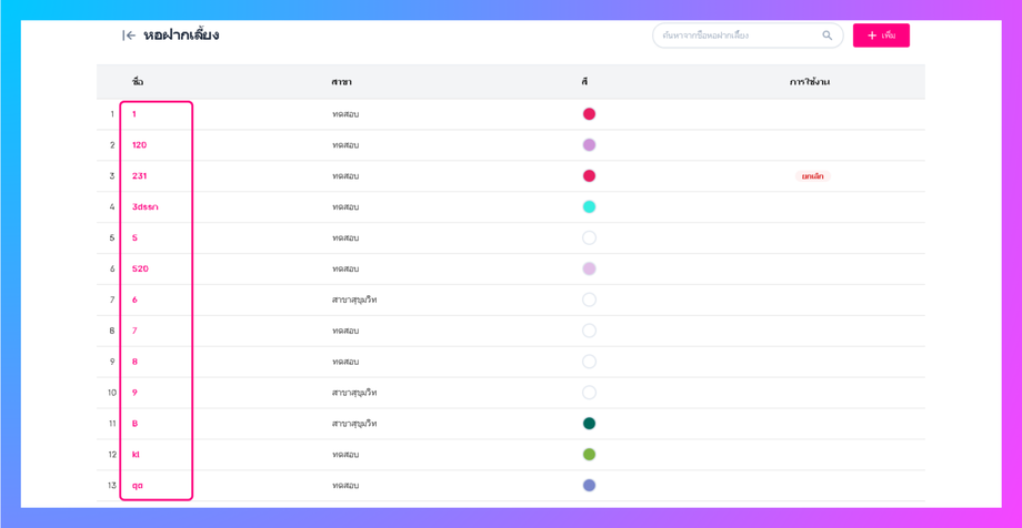 ไปที่เมนูตั้งค่า > หอฝากเลี้ยง > คลิกปุ่ม "เพิ่ม"