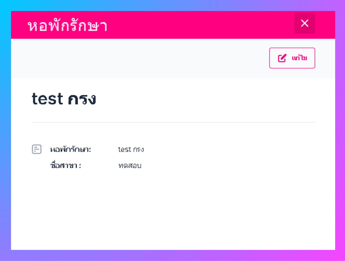- ผู้ใช้สามารถแก้ไขหอพักรักษาได้