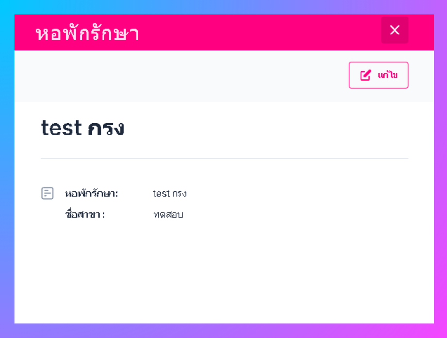 • ผู้ใช้สามารถแก้ไขหอพักรักษาได้