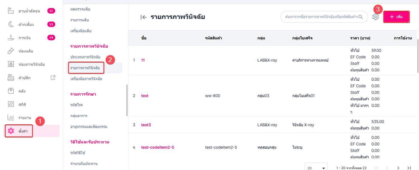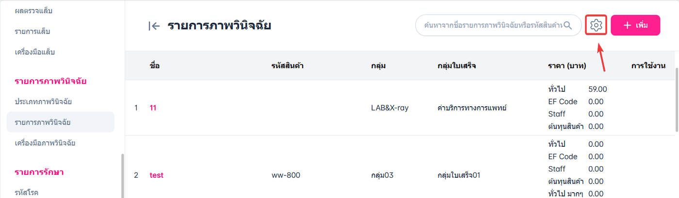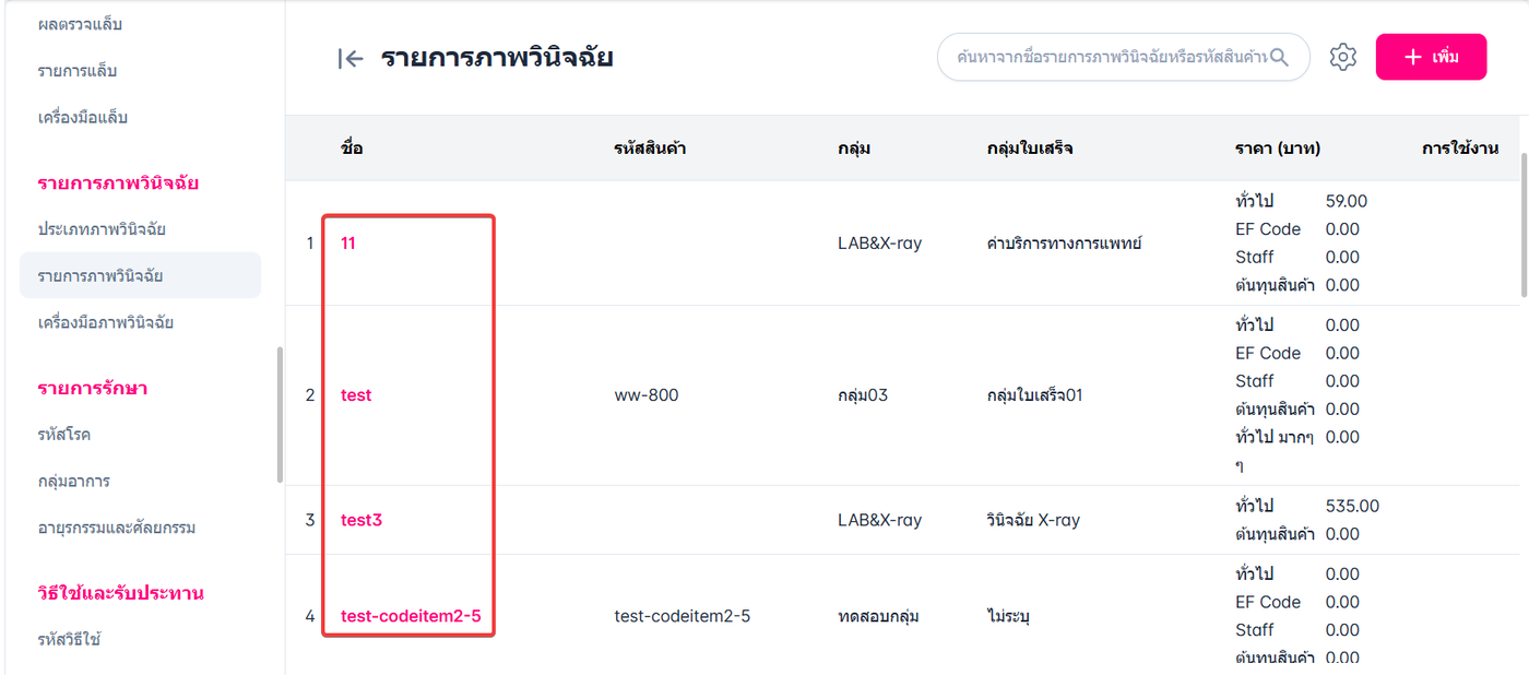 ระบบจะแสดงหน้ารายการภาพวินิจฉัย จากนั้นคลิก + เพิ่ม