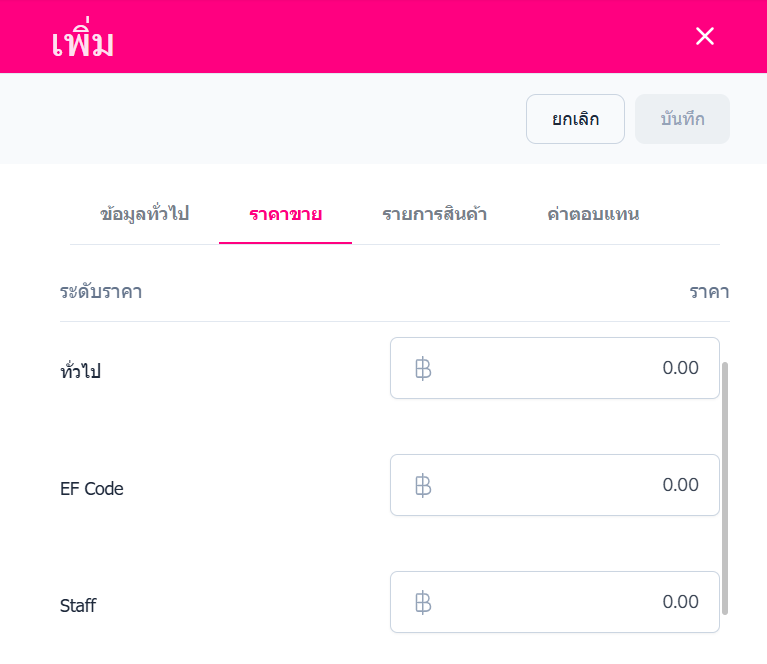 สามารถเพิ่มรายละเอียดตามระดับเช่น ทั่วไป ,ปกติ ,พนักงาน ,พิเศษ