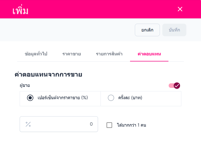 สามารถแก้ไขข้อมูล ค่าตอบแทนจากการขายได้สามารถแก้เป็นแบบเปอร์เซ็นหรือบาทได้ และสามารถแก้ไขการแบ่งค่าตอบแทนเป็นแบบเฉลี่ยหรือแบบบุคคลได้