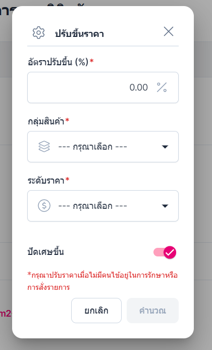 โดยสามารถแก้ไขเป็นเปอร์เซ็น และเลือกระดับราคาที่จะแก้ไขได้
