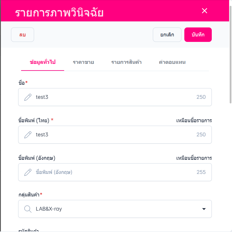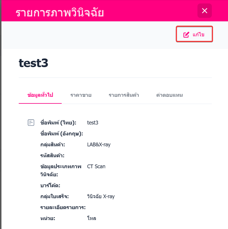 เมื่อผู้ใช้อยู่ในหน้ารายการภาพวินิจฉัย เลือกรายการแล็บที่ต้องการแก้ไข