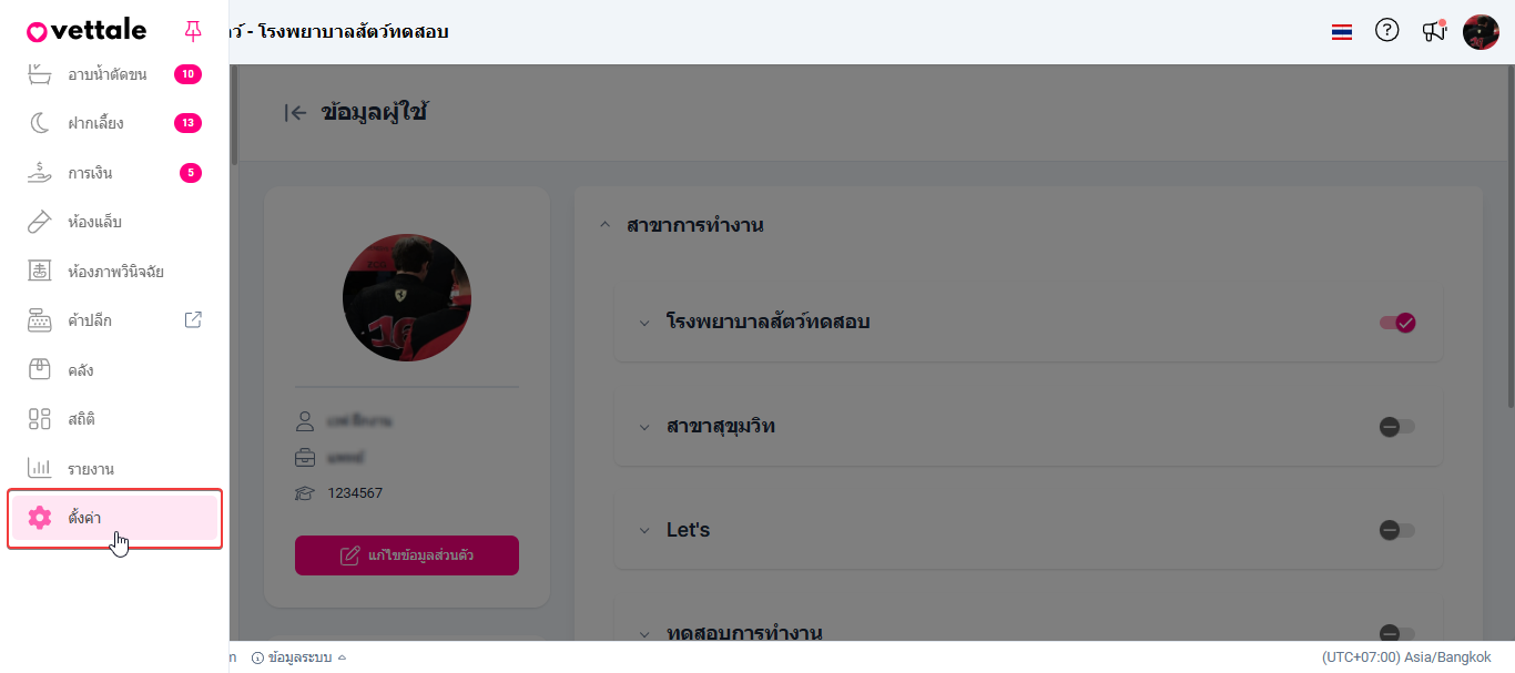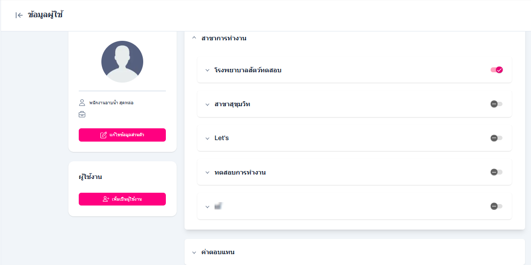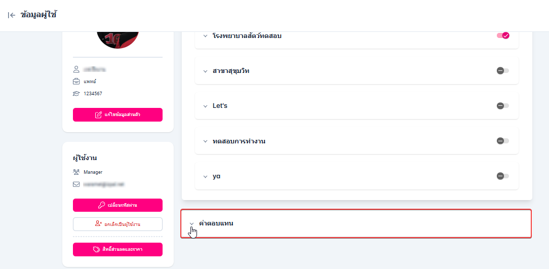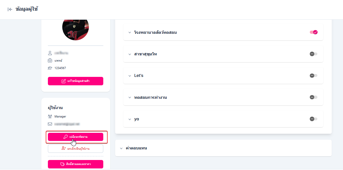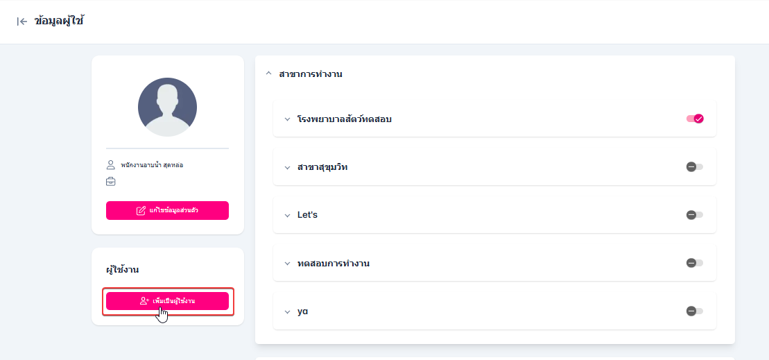 ระบบจะนำผู้ใช้งานไปยังหน้าข้อมูลผู้ใช้งาน เพื่อแสดงรายละเอียดข้อมูลที่เกี่ยวข้องและรองรับการจัดการข้อมูลผู้ใช้งานภายในระบบ