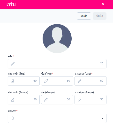 ระบบจะเข้าสู่หน้าเพิ่มพนักงาน ผู้ใช้งานกรอกข้อมูลดังนี้