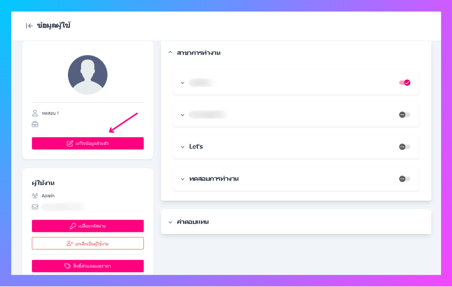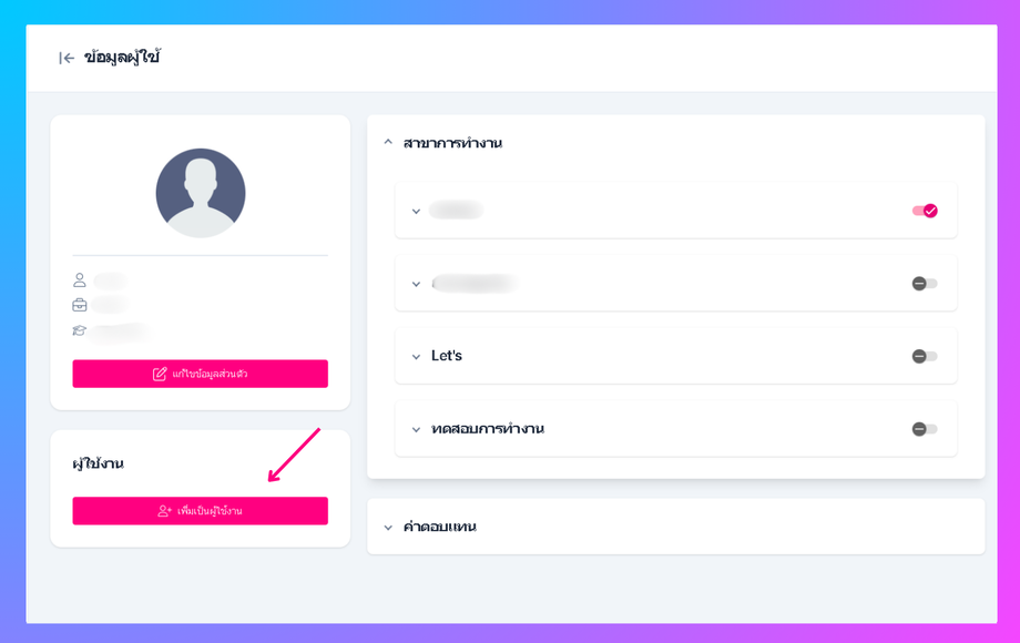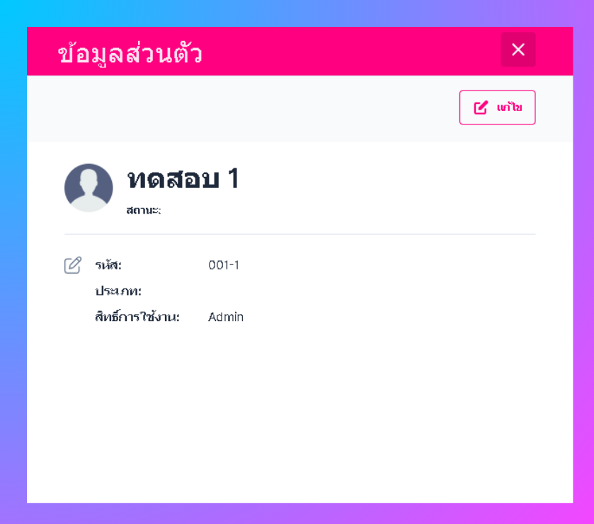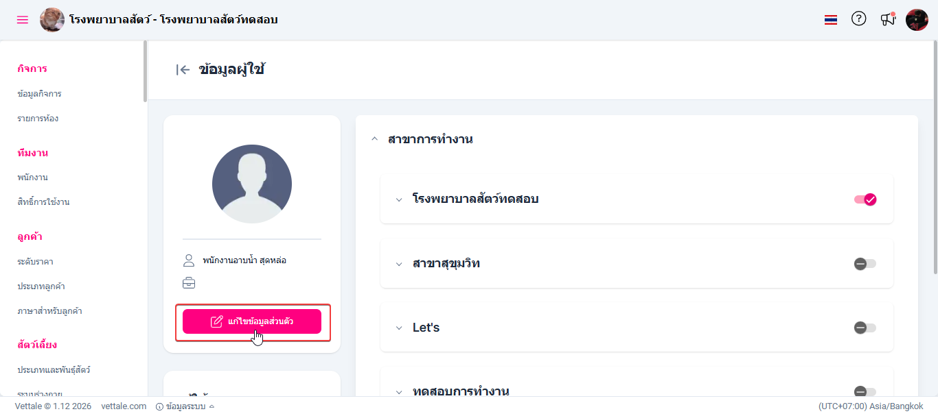 ผู้ใช้สามารถแก้ไขข้อมูลผู้ใช้งานได้โดยคลิกชื่อพนักงานเพื่อเข้าไปทำการแก้ไข