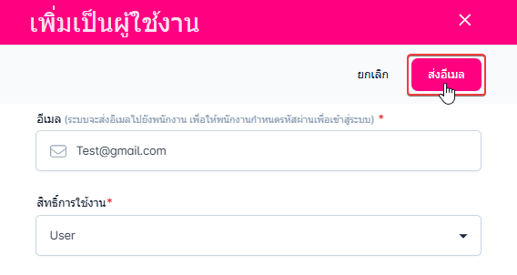 ผู้ใช้งานสามารถเพิ่มอีเมลผู้ใช้งานได้ และยังสามารถกำหนดสิทธ์การใช้งานได้