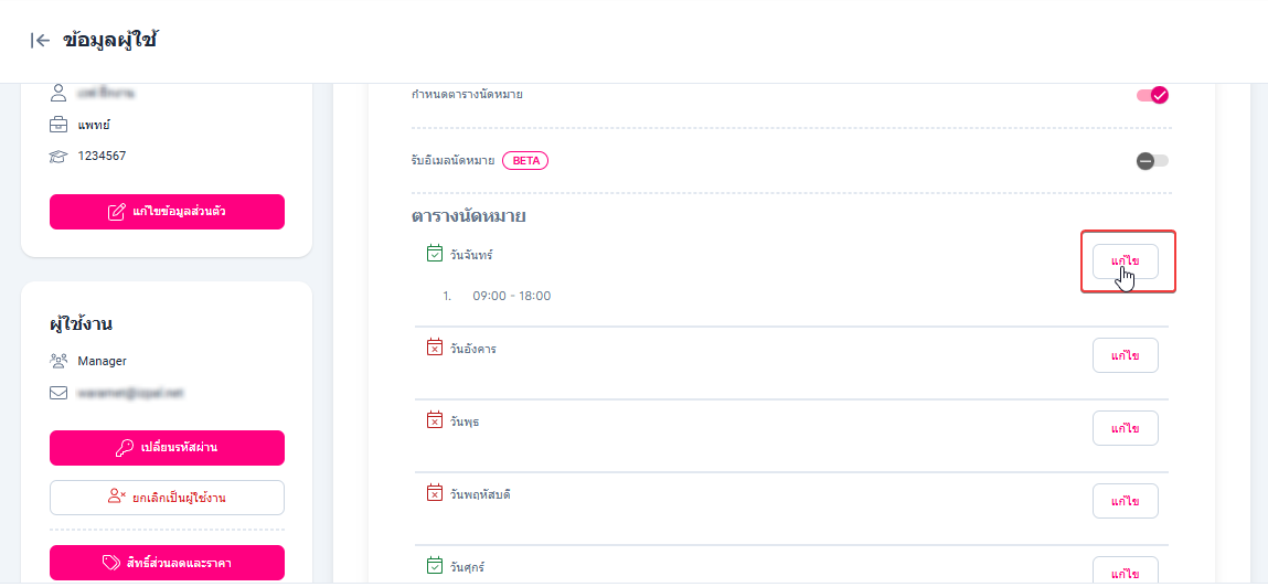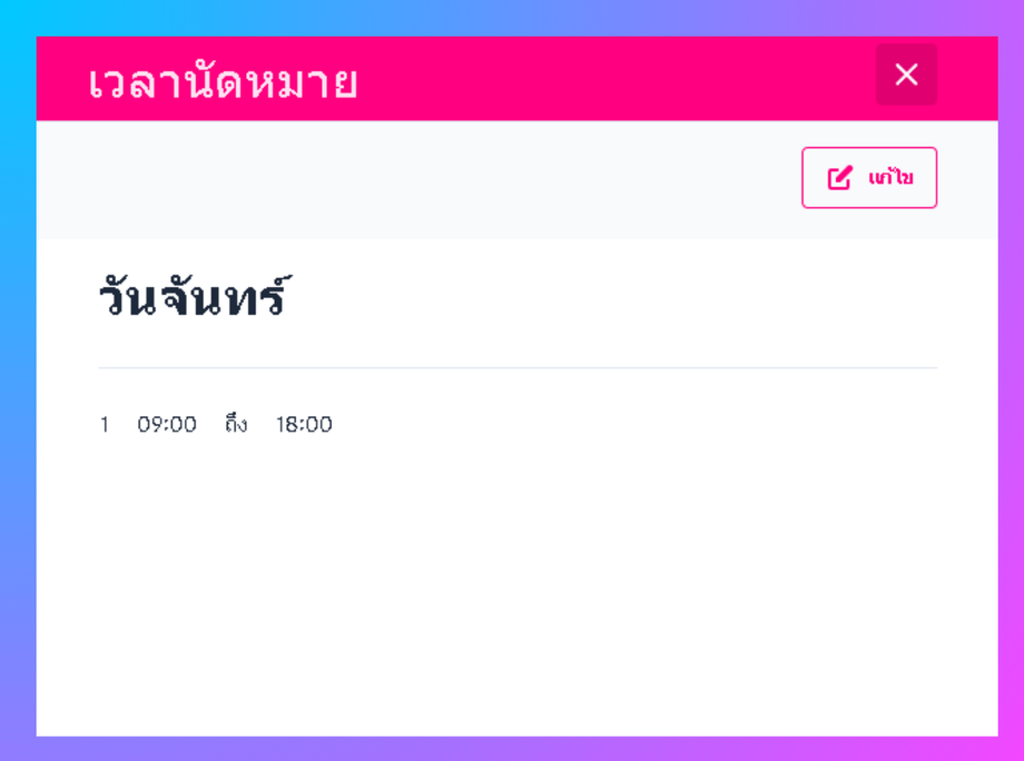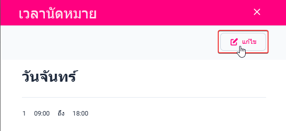 เมื่อผู้ใช้เข้าสู่หน้ารายละเอียดเวลานัดหมายแล้ว ให้คลิกปุ่มแก้ไข เพื่อเข้าสู่หน้าแก้ไข