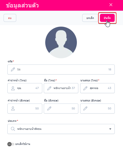 แก้ไขข้อมูลส่วนตัวพนักงาน