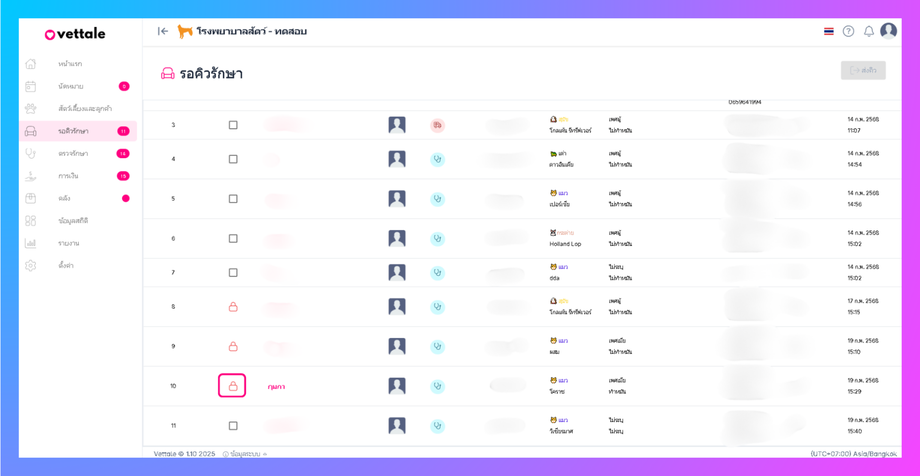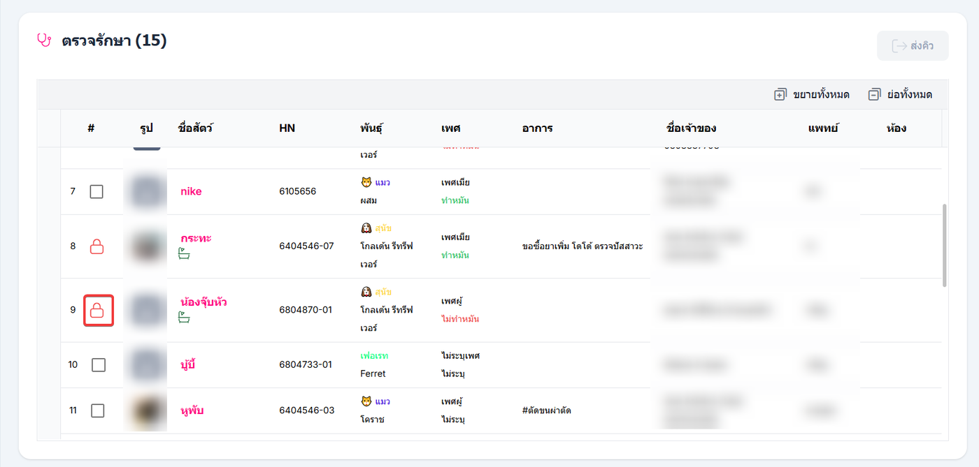 ในส่วนนี้หากผู้ใช้งานต้องการเข้าไปที่สัตว์ป่วย แต่ไม่สามารถเข้าถึงได้เนื่องจากมีการล็อคคิวโดยผู้ใช้งานท่านอื่น ดังภาพ