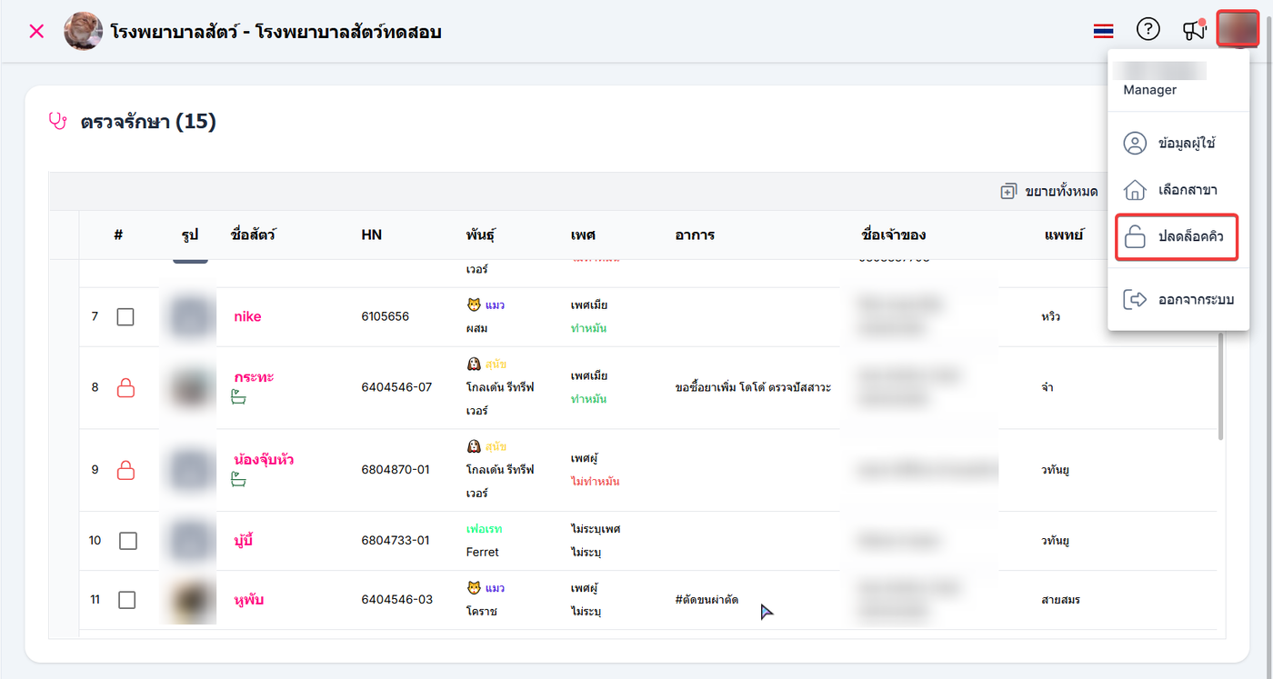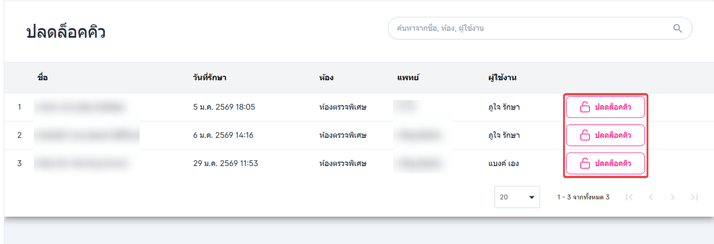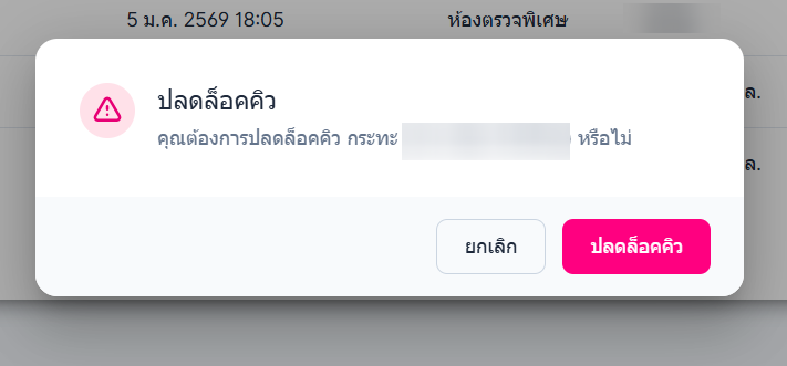 ผู้ใช้งานสามารถเลือกปลดล็อคคิวได้โดยการคลิกที่ปุ่ม ปลดล็อคคิว