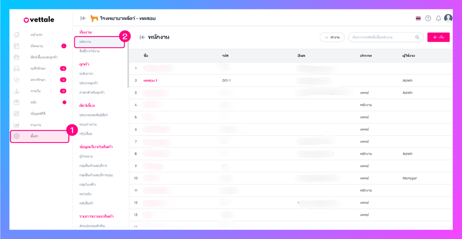 ไปที่เมนูตั้งค่า > ทีมงาน > พนักงาน