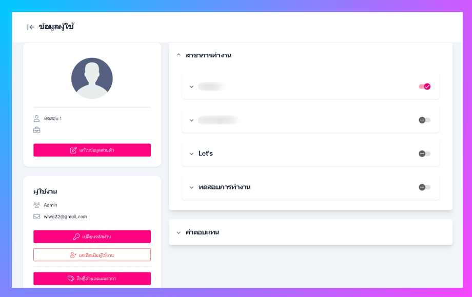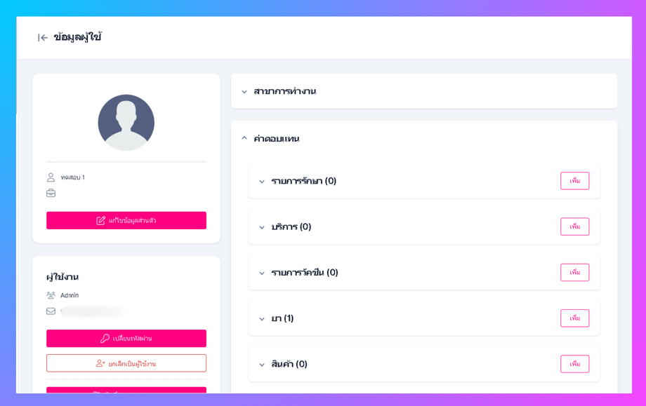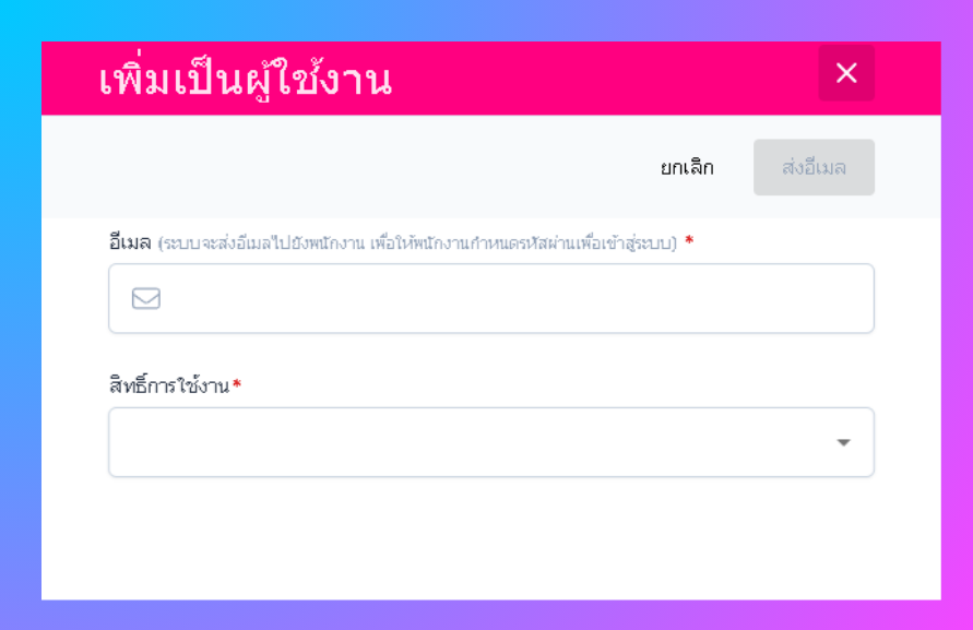 ส่วนนี้เป็นระบบการจัดการข้อมูลพนักงานและสิทธิ์การใช้งานช่วยให้ผู้ใช้งานระบบสามารถบริหารจัดการข้อมูลพนักงานและกำหนดสิทธิ์การใช้งานของพนักงานได้