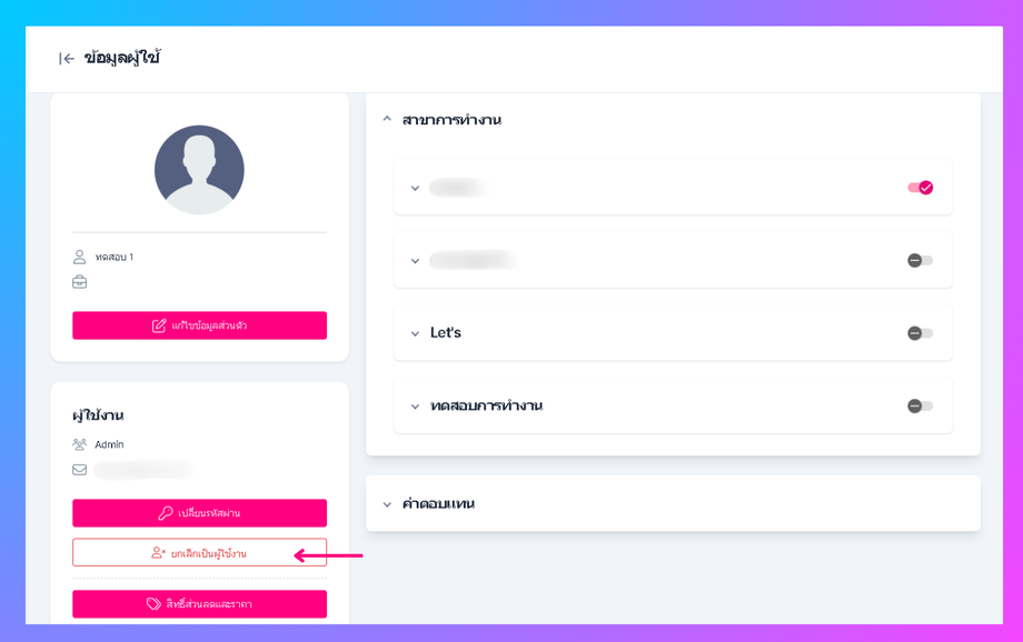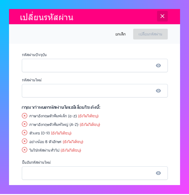 การเปลี่ยนรหัสผ่าน & ยกเลิกการเป็นผู้ใช้งาน