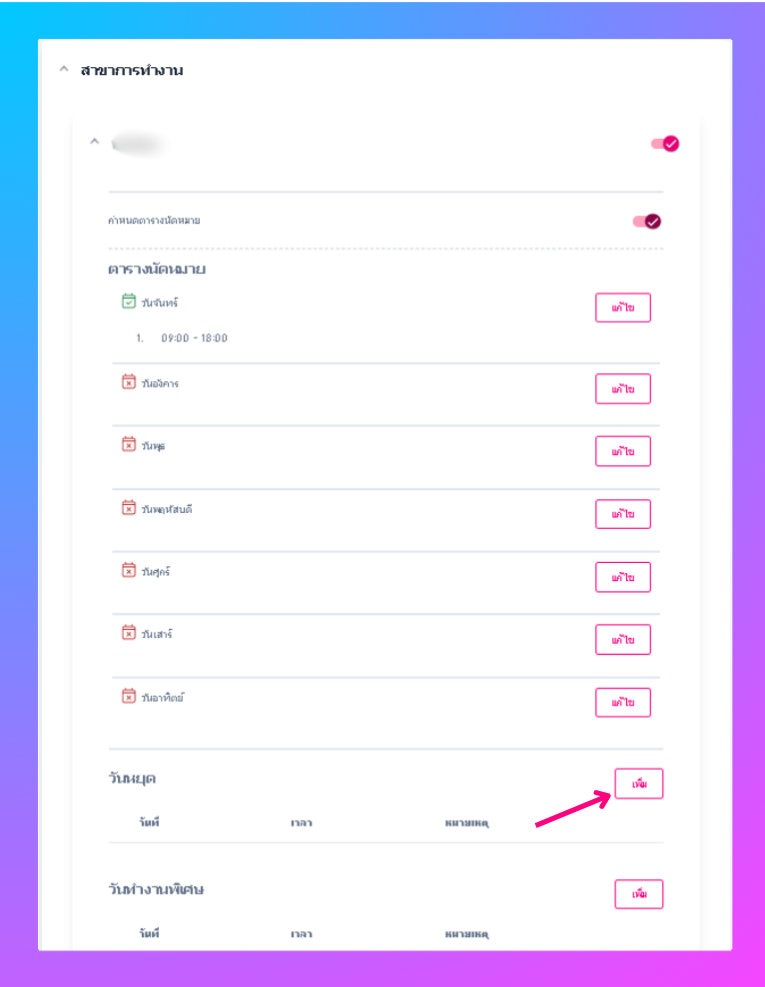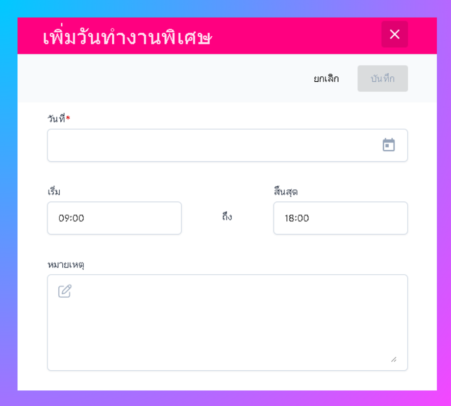 เมื่อเข้าสู่หน้าเพิ่มวันหยุดสามารถแก้ไขได้ดังนี้