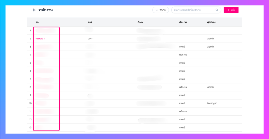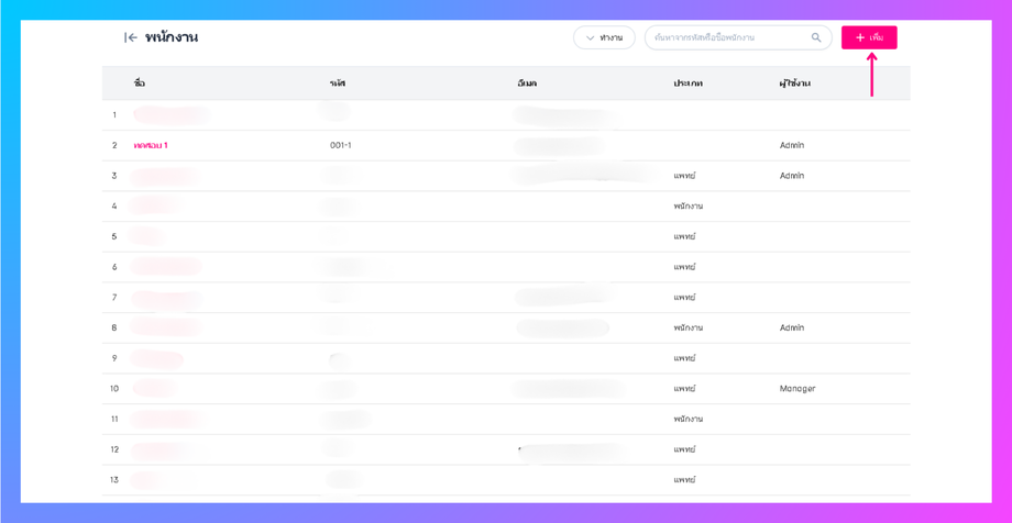 ระบบจะแสดงหน้ารายชื่อพนักงาน