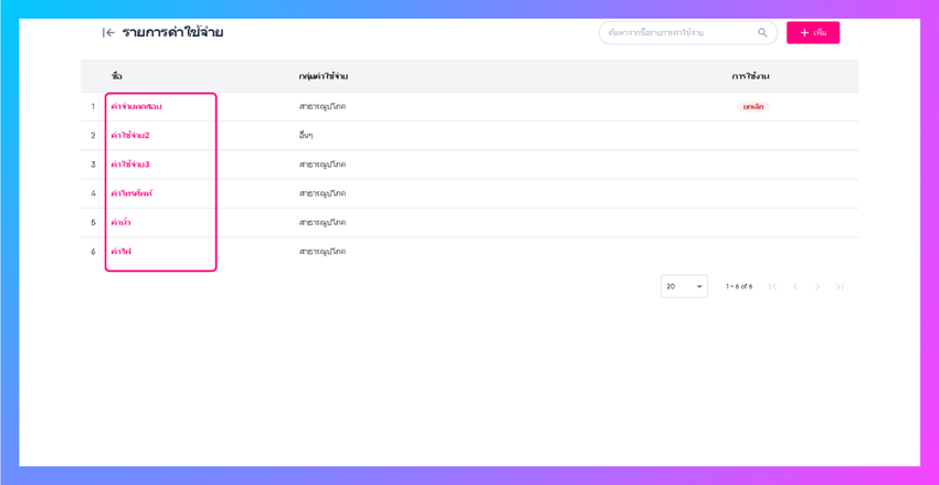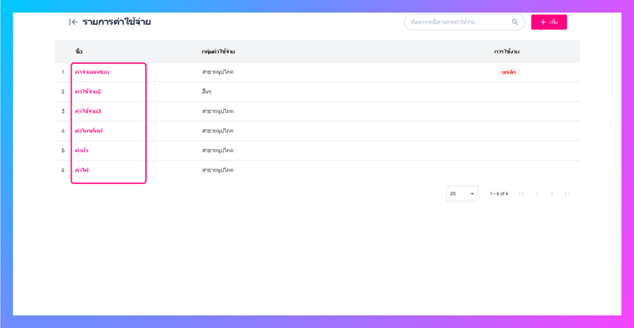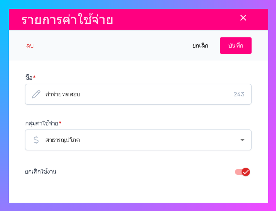 - สามารถแก้ไขชื่อ กลุ่มค่าใช้จ่าย