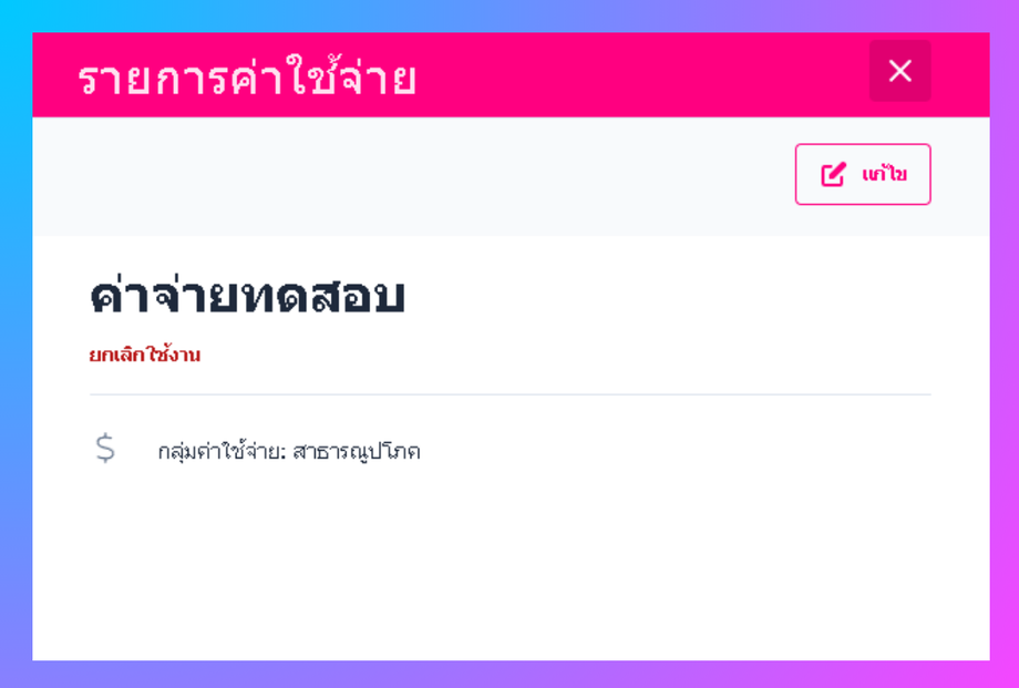 ระบบจะเข้าสู่หน้ารายละเอียดรายการค่าใช้จ่าย สามารถกด "แก้ไข" มุมบนขวาเพื่อแก้ไข