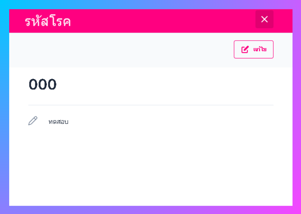เมื่อผู้ใช้อยู่ในหน้ารหัสโรค เลือกรหัสโรคที่ต้องการแก้ไข