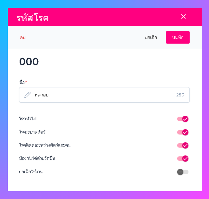 - สามารถเลือกเปิด/ปิด โรคทั่วไป