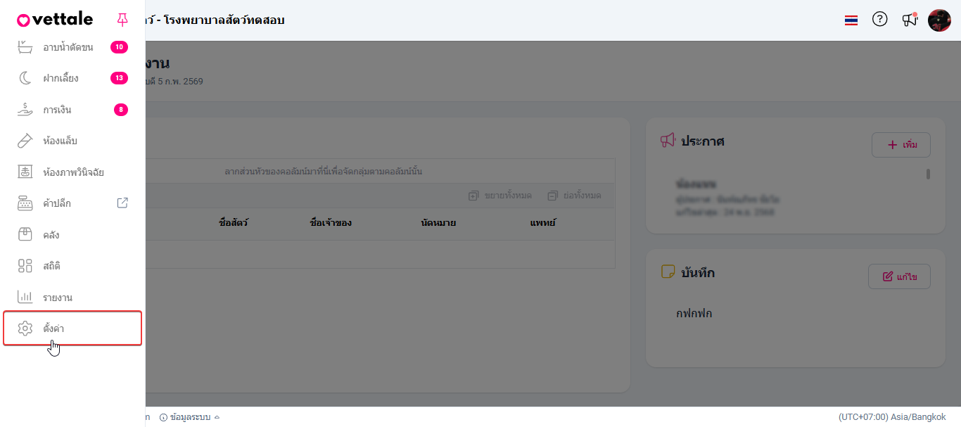 ผู้ใช้งานไปที่เมนูตั้งค่า