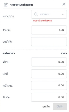 ผู้ใช้งานสามารถกำหนด หน่วยการขาย และกำหนดระดับราคาได้