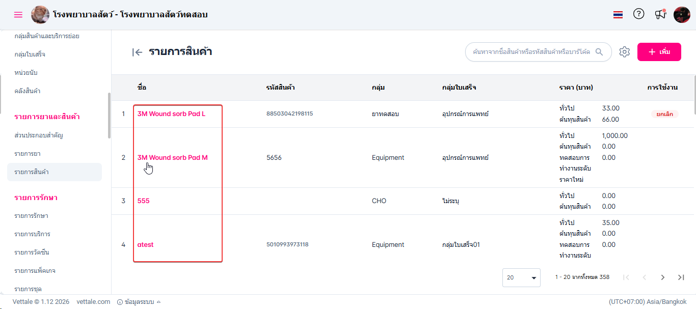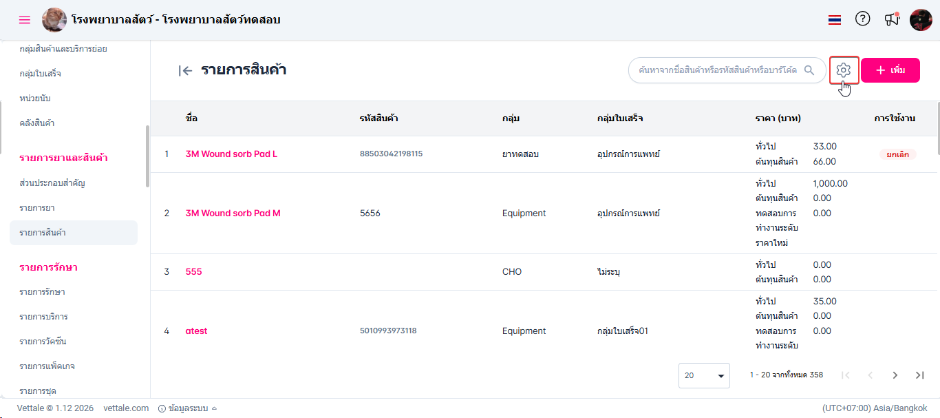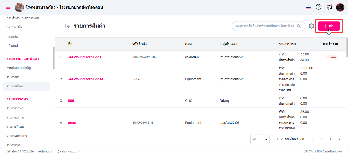 เมื่อผู้ใช้งานเข้าสู่หน้ารายการสินค้า ให้ผู้ใช้งานคลิกปุ่ม "เพิ่ม"