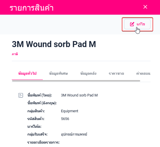 เมื่อผู้ใช้งานแก้ไขข้อมูลเสร็จสิ้นคลิก บันทึก ระบบจะบันทึกการแก้ไขรายการสินค้า