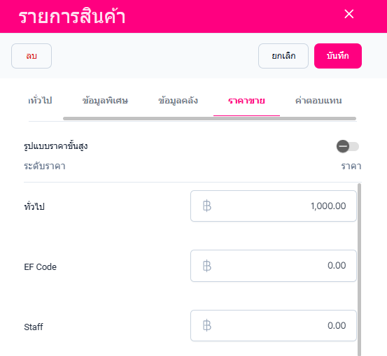 ผู้ใช้งานสามารถเพิ่มรูปแบบราคาขั้นบันได คือ กำหนดราคาสินค้า เช่น
