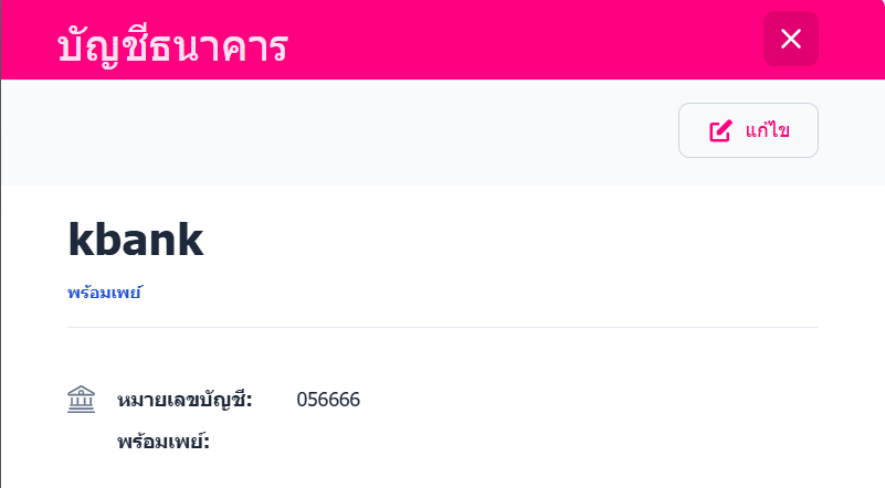 • เมื่อผู้ใช้อยู่ในหน้าบัญชีธนาคาร ให้ผู้ใช้เลือกรายการที่ต้องการแก้ไข