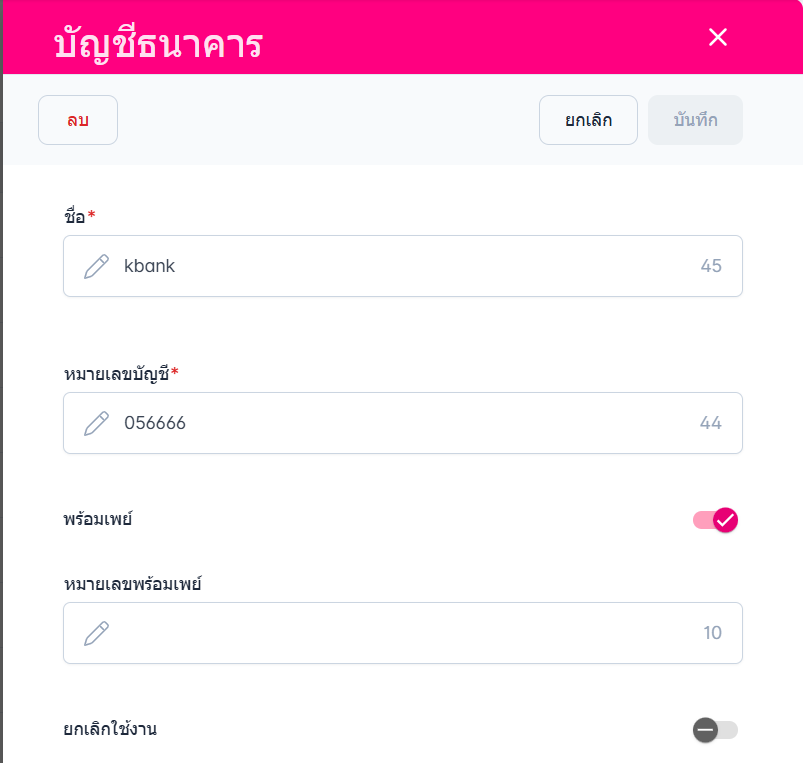 • สามารถเปิด-ปิด ใช้งานการชำระด้วยพร้อมเพย์
