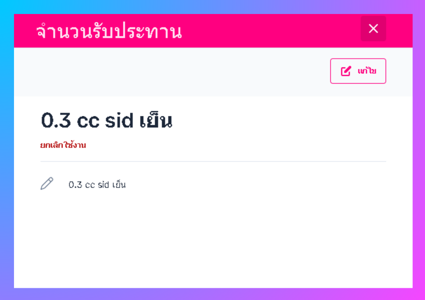 - เมื่อเลือกชื่อที่ต้องการแก้ไขแล้ว ระบบจะเข้าสู่หน้าจำนวนรับประทานที่ผู้ใช้งานเลือก