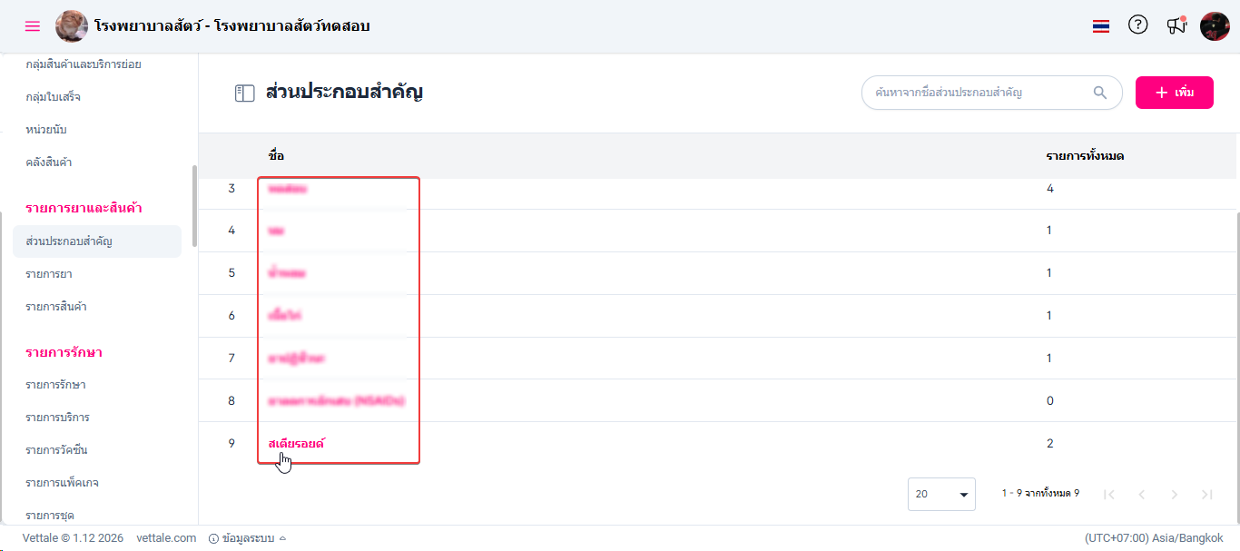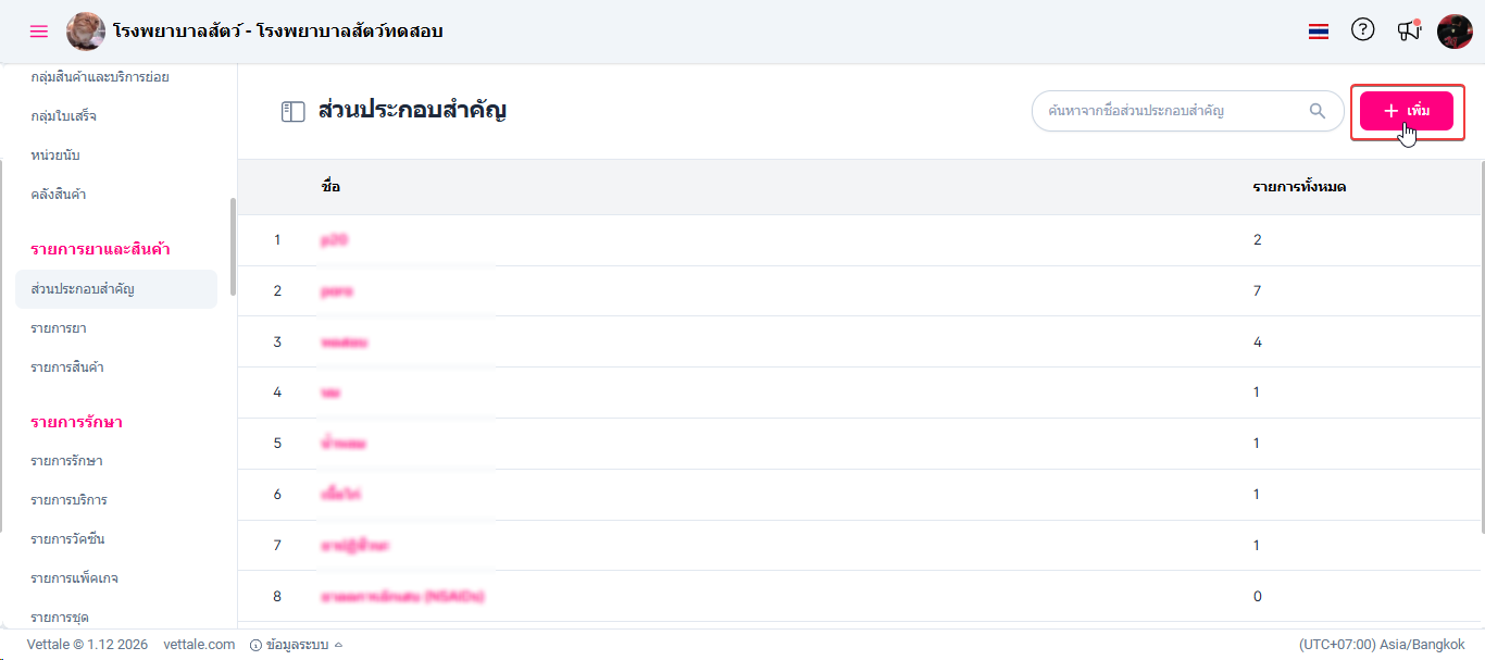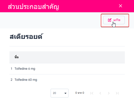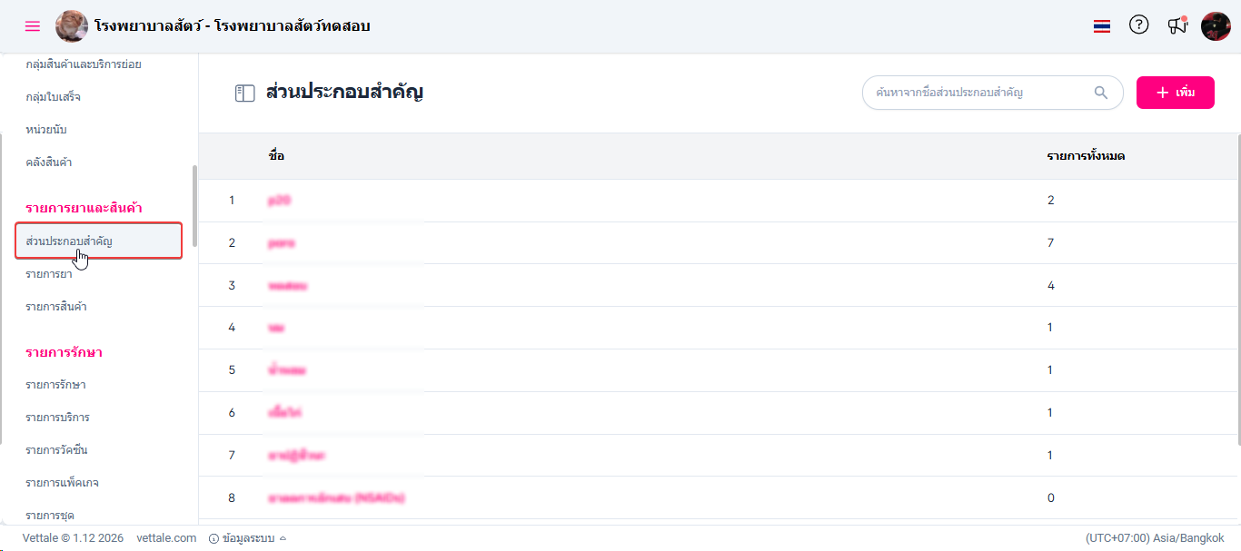 • เมื่อผู้ใช้งานอยู่ในหน้าส่วนประกอบสำคัญคลิก เลือกส่วนประกอบสำคัญที่ต้องการแก้ไข